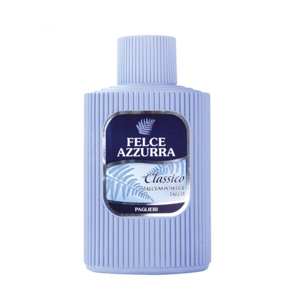 Le talc est 100 % naturel (minéral) et formulé sans conservateurs ni colorants — il ne contient qu’une poudre fine enrichie du parfum signature Felce Azzurra.