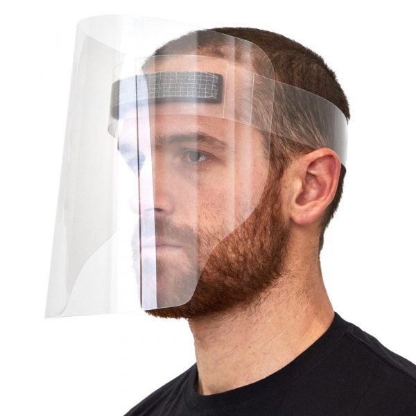 Visière faciale : cet écran facial est doté d’une sangle réglable qui permet l’ajustement et le réglage à votre morphologie, il se fixe facilement grâce à un mécanisme de verrouillage pratique. Ses dimensions sont de 340 x 247 mm qui lui conférent une couverture totale du visage et des yeux.