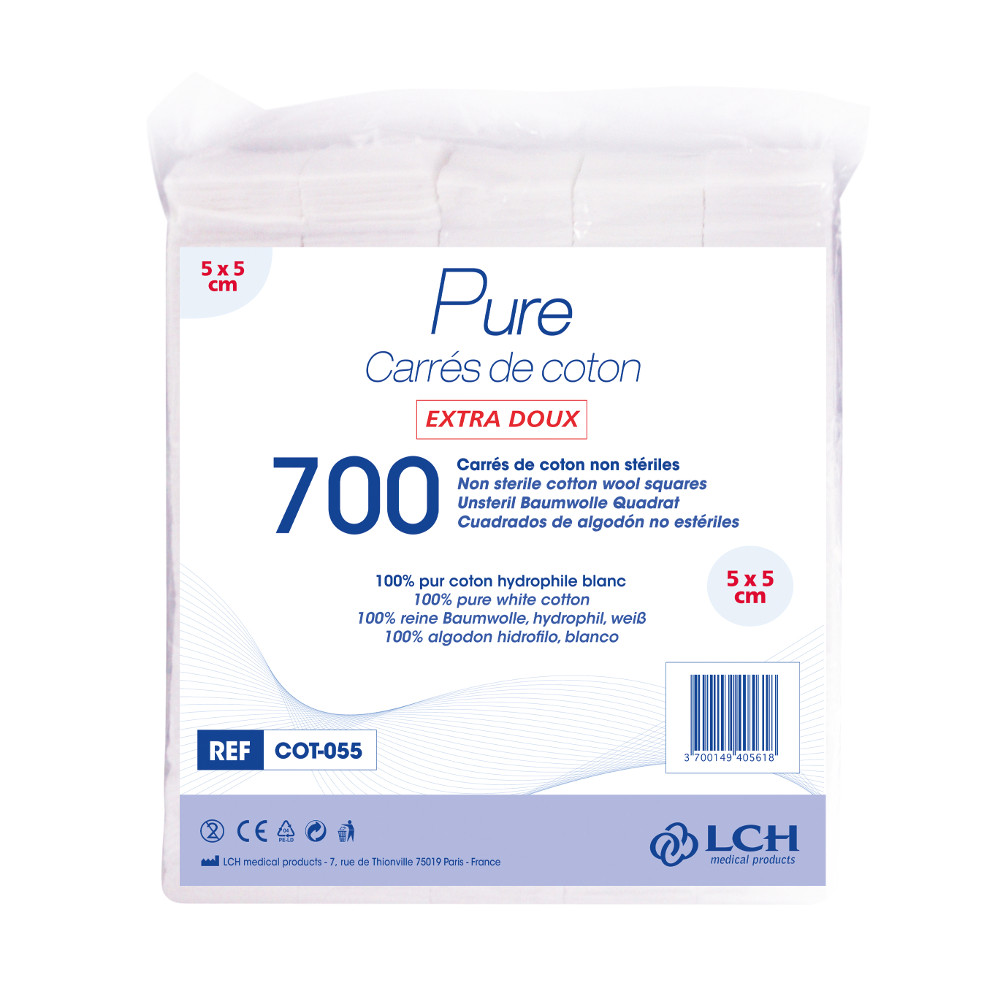 Les cotons carrés 5×5 cm en sachet de 700 sont un indispensable pour tout institut de beauté, combinant hygiène, confort et praticité.