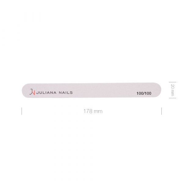 Double-face grain 100/100 : Juliana Nails réalise cette lime avec une granulométrie de 100 grit sur chacune de ses faces. Pour une abrasion rapide des matériaux d’onglerie comme l’acrylique et le gel.