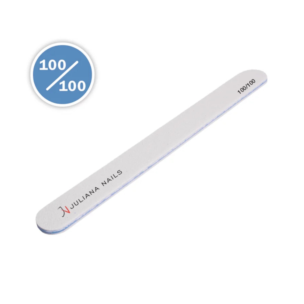Juliana Nails propose sa Lime Blanche Droite grain 100/100, pour modeler et raccourcir efficacement les extensions acryliques, les tips et même les ongles naturels. Renforcés grâce à son double grain très abrasif de 100 grit sur chaque face, offrant une action rapide et précise dès les premiers coups de lime. Elle résiste à un usage intensif et se désinfecte facilement, tout en garantissant une prise en main confortable pour un limage professionnel.