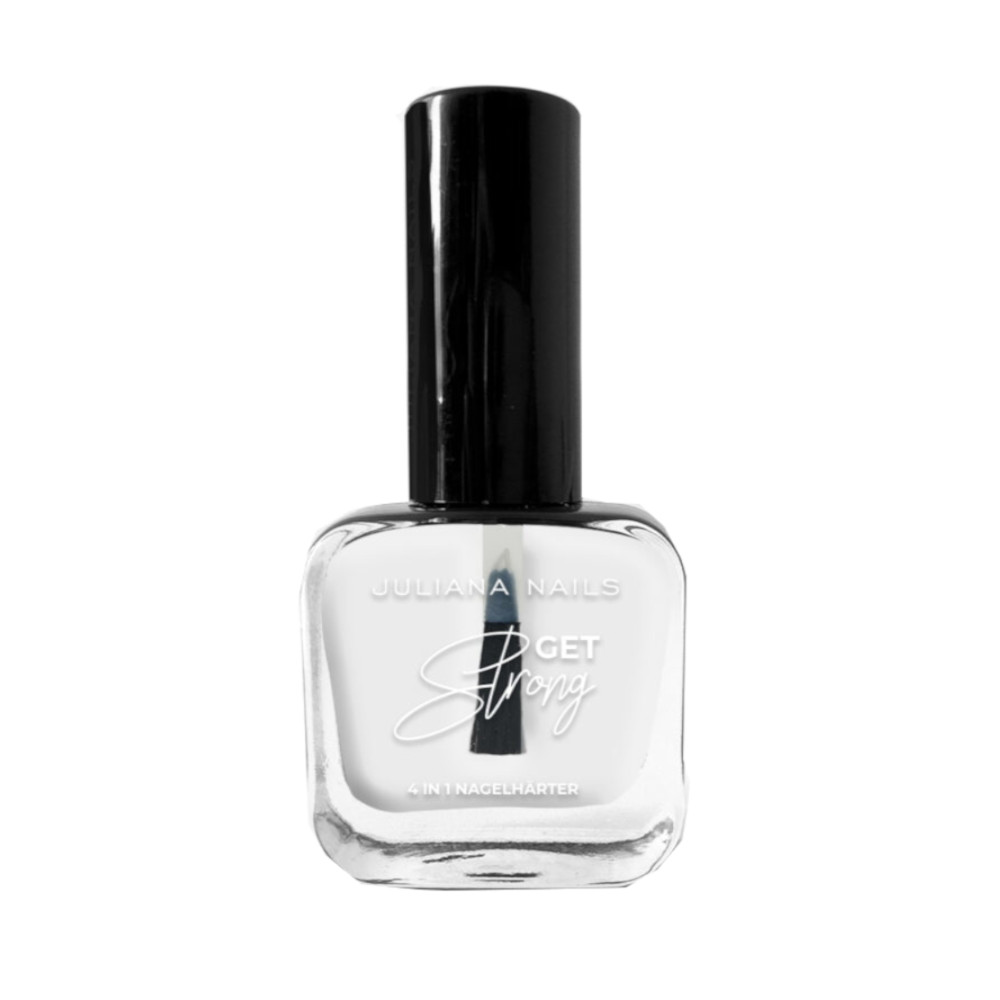 Avec Get Strong 4 en 1, Juliana Nails vous offre la simplicité d’un geste et la performance d’un traitement professionnel pour des ongles visiblement plus forts et éclatants.