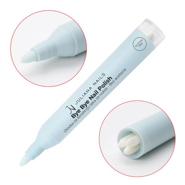 Vous utilisez le Stylo Correcteur Dissolvant Bye Bye Nail Polish de Juliana Nails pour éliminer avec précision les bavures de vernis autour des ongles. Ce stylo de 4 ml vous offre une prise en main intuitive. De plus, ça durée de vie de votre accessoire est prolongé grâce à ses 4 pointes interchangeables.