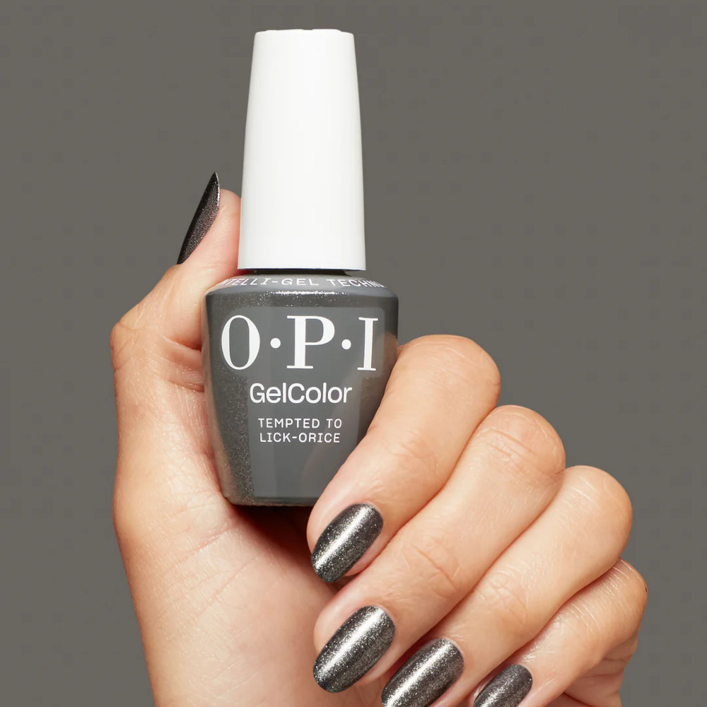 Le vernis semi-permanent Gel Color Tempted to Lick-orice by OPI est une couleur issu de la collection été 2025 Good Enough to Tread.