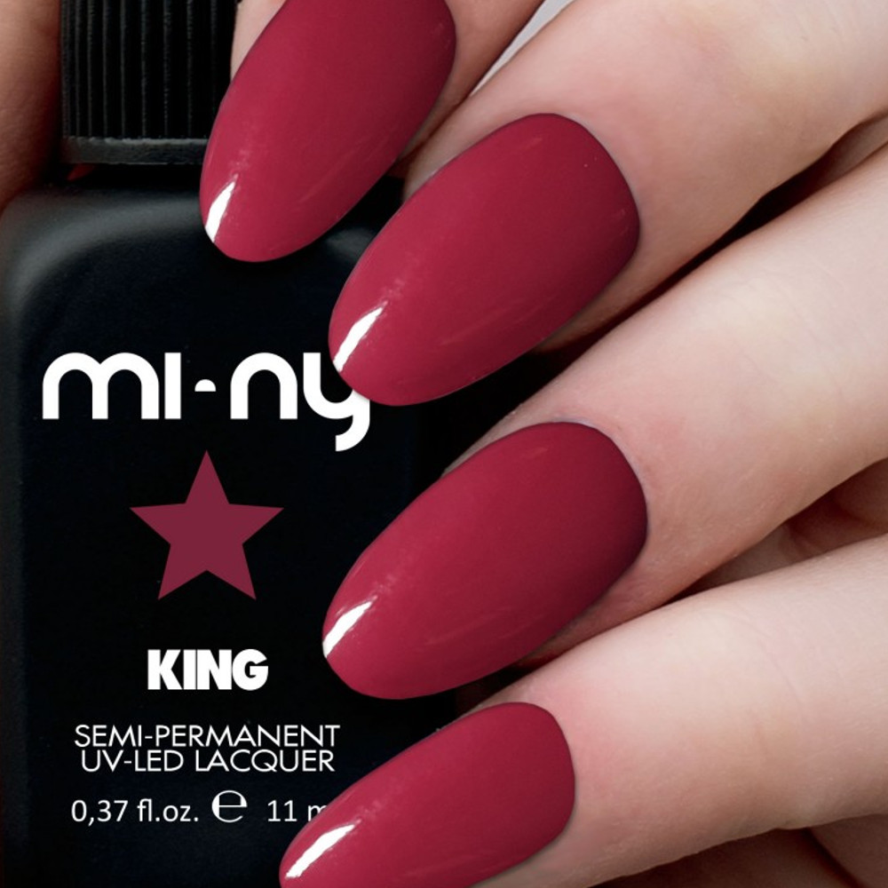 Le Vernis Semi Permanent King de MI-NY sublime vos ongles avec une couleur intense et une brillance longue durée.