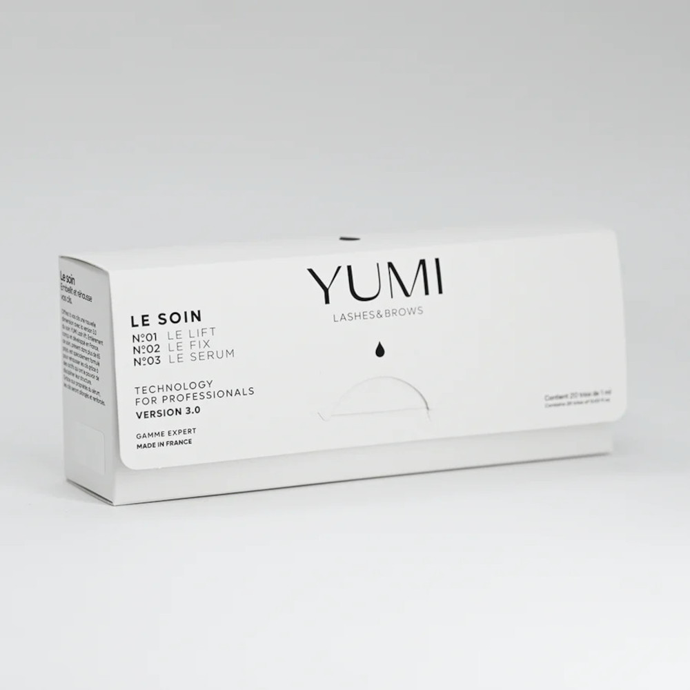 Le Kit TRIO Lashes & Brows 3.0 Yumi constitue un élément central du protocole de rehaussement et de lamination des cils et des sourcils. Grâce à ses trois solutions complémentaires, il permet de restructurer la fibre du poil tout en la nourrissant.