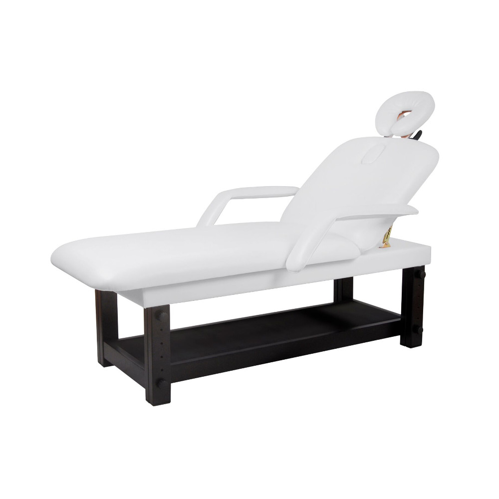 Cette table peut convenir pour des massages, des épilations ou soin visage ou corps. De plus , elle est apporte confort avec son matelas d’une épaisseur de 10 cm. D’autre part, avec son large plateau de rangement plein sous la table, vous aurez la possibilité de disposer des serviettes ou chauffe serviette pour un gain de place dans votre institut.