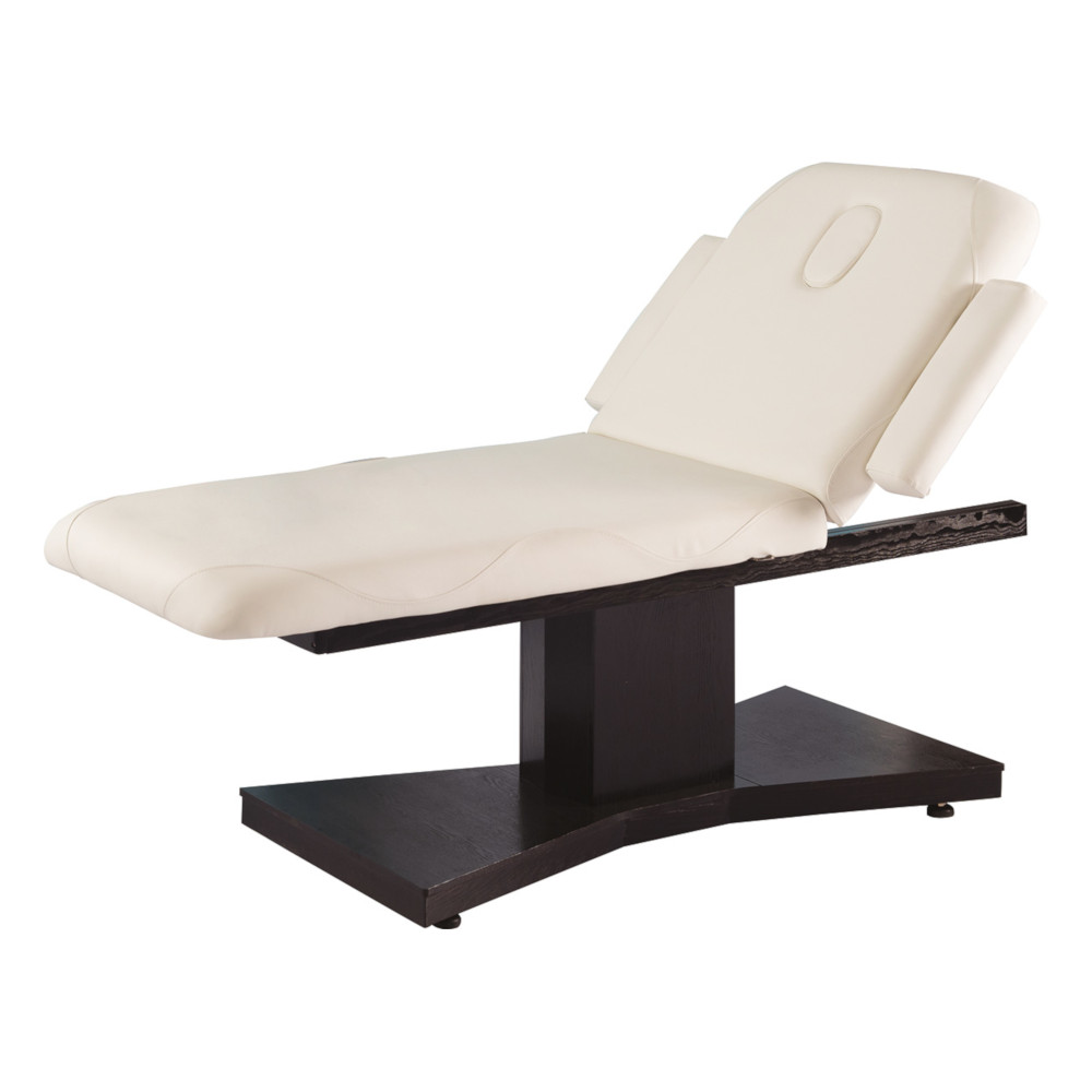 La table de soins électrique HIMALAYA est conçue pour offrir confort et praticité aux professionnels du bien-être et de l’esthétique. Sa structure en bois wengé confère une esthétique élégante et une robustesse appréciable.