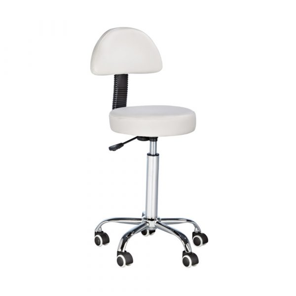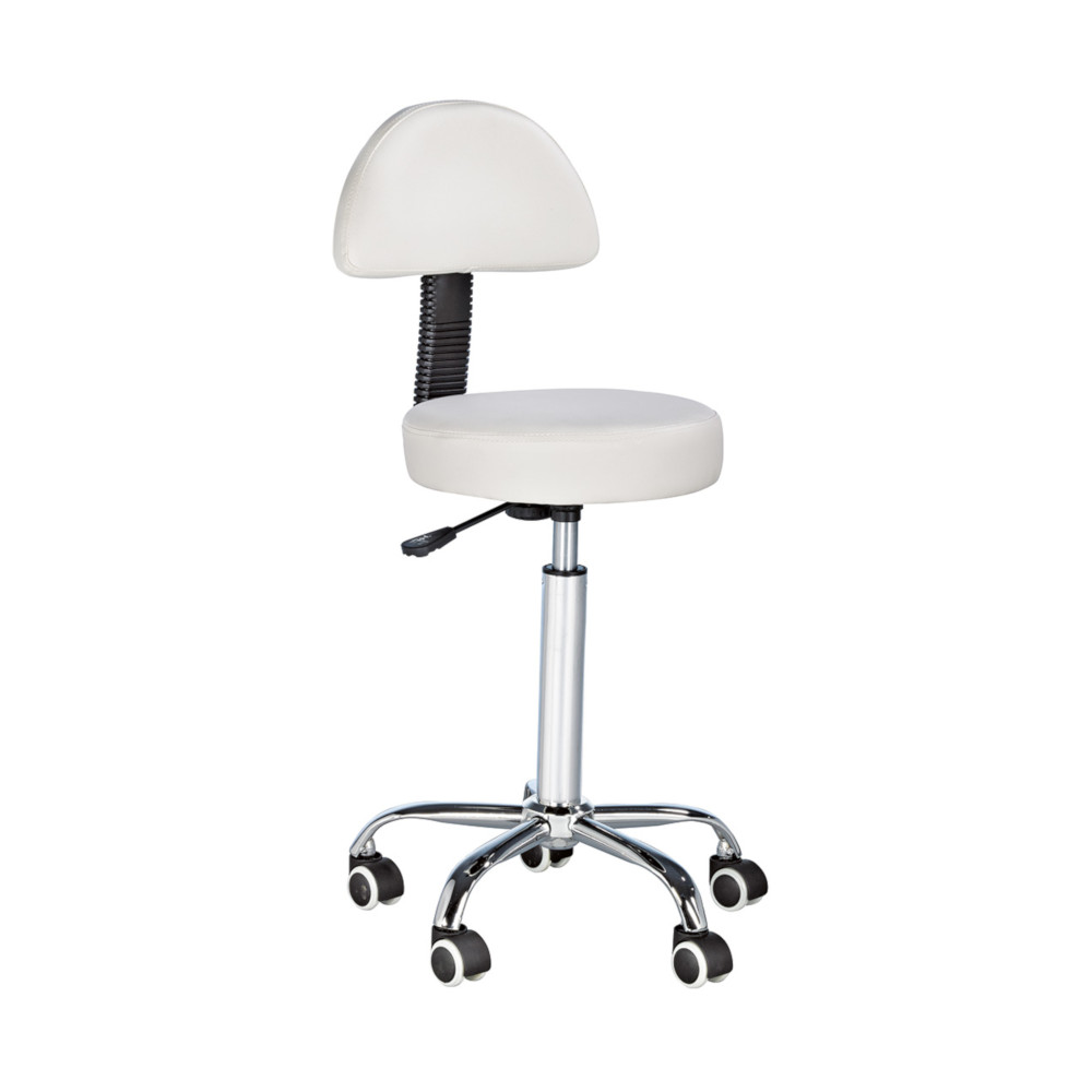 Le Tabouret avec Dossier et Pied Chromé est conçu pour offrir confort et élégance aux professionnels. Il se distingue par son assise ronde et plate, ainsi que par son dossier ovale ergonomique, assurant une posture confortable.