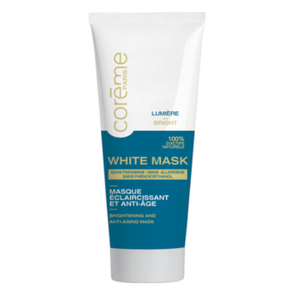 Le masque visage White Mask 100 ml de Corème représente un soin éclaircissant et anti-âge complet, conçu pour revitaliser les peaux ternes ou présentant des irrégularités de teint.